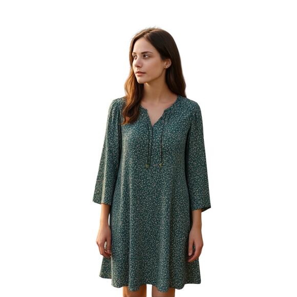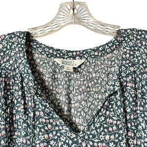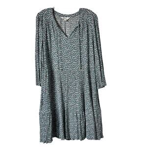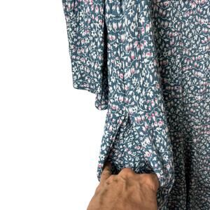Market & Spruce Blue Floral Gauze 3/4 Sleeve Dress Pockets M Beachy (2769)