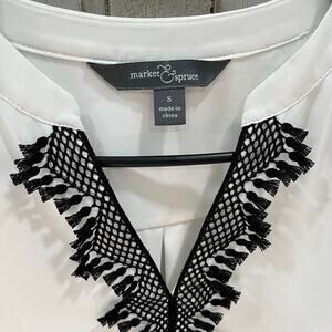 Add a touch of bohemian flair to your wardrobe with this Market & Spruce blouse! This white blouse features beautiful embroidery and trendy bell sleeves, perfect for adding a unique touch to any outfit. Great for casual days out or dressing up for a special occasion. This blouse is in excellent condition and ready to wear.