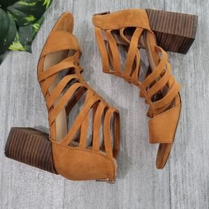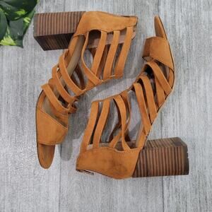 Market & Spruce Brown Strappy Cage Heeled Sandals