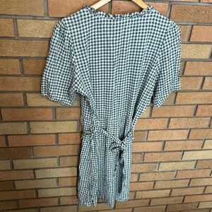 Market & Spruce Button Front Tie Waist Green & White Checkered Gingham Size M