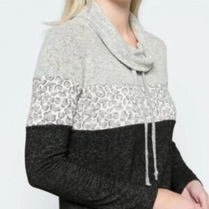 NEW with tag Stitch Fix Market & Spruce Brushed Knit Cozy Top Womens Medium Gray/Black Leopard Pullover