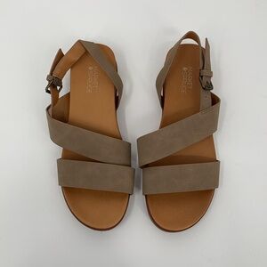 Market & Spruce Carlla Asymmetric sandal taupe tan shoe strappy flat brown new 8
