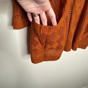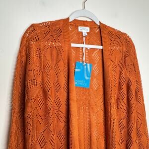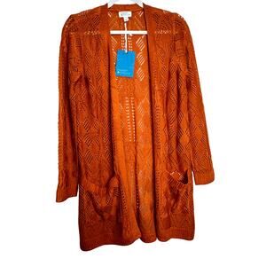 Market & Spruce Cecily Pointelle Open Duster Cardigan Orange NWT Size Small