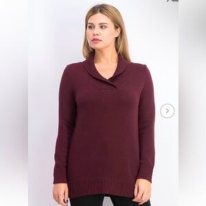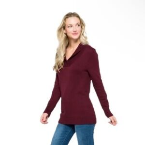 Market & Spruce Cowl-neck Long Line Tinic Sweater, Maroon, XXL