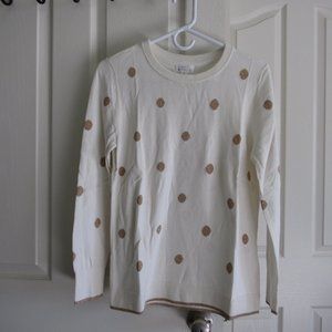 Market & Spruce Crew Neck Pullover Sweater Cream with Metallic Gold Dots Medium