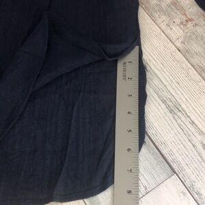 Dark blue, roll tab and button sleeves, slit on side, curved hem, light weight, crocheted detailing, 2 button front v-neck,colors may vary due to lighting, good used condition, Sz: S Style # FD84460