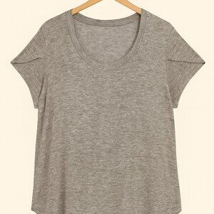 Ultra-soft Market & Spruce short sleeve top in a heather gray knit with an incredibly smooth, “buttery” feel. Designed with a wide neckline and stylish crisscross shoulder detail that adds interest while remaining comfortable and easy to wear.