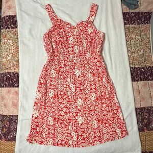 Market & Spruce (M) Red White Floral Adjustable Button Straps Dress - Stitch Fix
