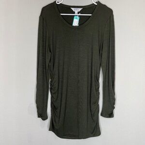 Market & Spruce Maternity Knit Top Large Alma Long Sleeve Elbow Patch Green NEW