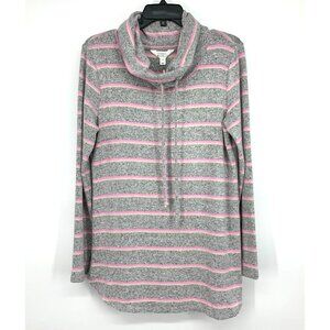 Market & Spruce Molly Top Gray Pink Stripe Cowl Neck Long Sleeve NWT