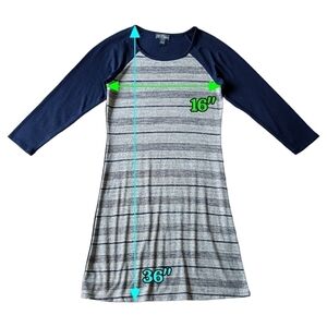 Market & Spruce Navy Blue Gray Striped Raglan Sleeve Knit Dress Stretchy Soft