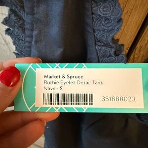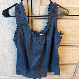 Market & Spruce Navy Eyelet Button-Front Ruffle Tank