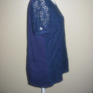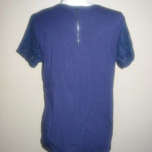 Market & Spruce Navy Hans Crochet Front Mixed Material Top Size Medium M NWT