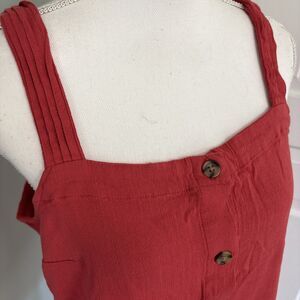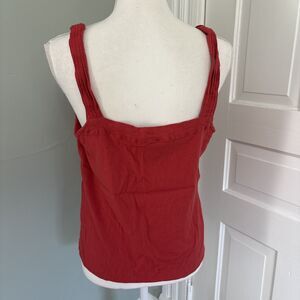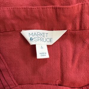 The Market & Spruce New Tenley Sleeveless Button Down Blouse in size Large is a stylish and versatile top perfect for casual occasions. Made of 97% rayon and 3% spandex, this red blouse features a solid pattern, round neckline, and a sleeveless design. The camisole style and regular fit make it comfortable and easy to wear for any bohemian-themed outfit. Ideal for women looking for a chic and trendy addition to their wardrobe collection.