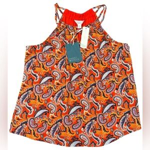 Market & Spruce Orange Multicolor Paisley Print Sleeveless Tank Size LP