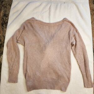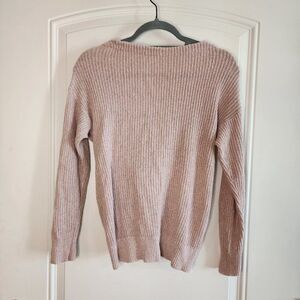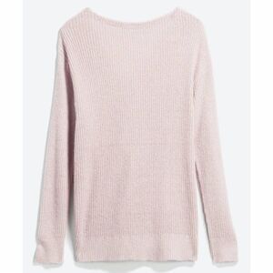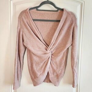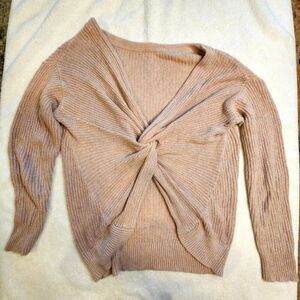 Stylish twist-back design. Soft knit stretch fabric. Perfect for layering. My chest is a little too large for this to feel comfortable.