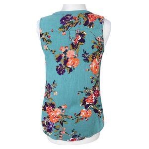 Market & Spruce Prat Henley Sleeveless Turquoise Gauzy Floral Blouse Med