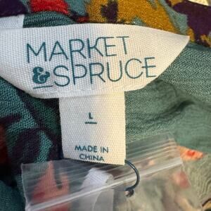 Market & Spruce Prat Sleeveless Green Floral Henley Blouse Rayon Size Large NWT