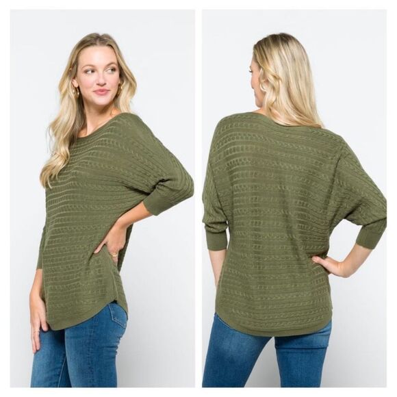 Market & Spruce Reviera Cable Knit Dolman Pullover 3/4 Sleeve Sweater