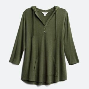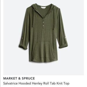 Market & Spruce 'Salvatrice' Hooded Henley Roll Tab Knit Top in Olive