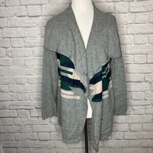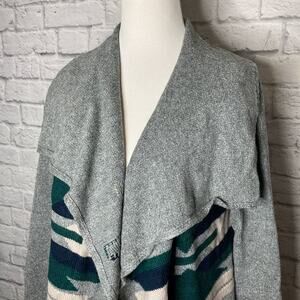 Market & Spruce Southwestern Open Forest Green Heather Grey Wrap Cardigan Size M