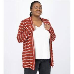 Women Plus Size Open Front Stripe Cardigan, Maroon color (tag says burnt orange)