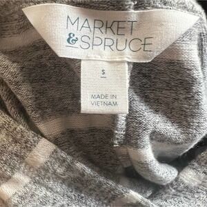 Heather gray and white striped hoodie. Super soft. Pocket in the front.
