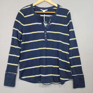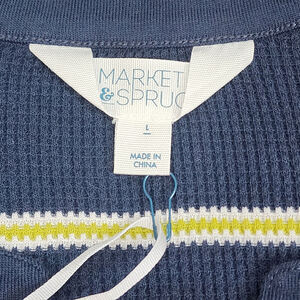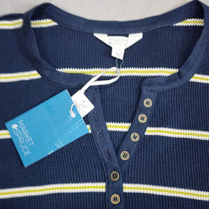 Market & Spruce Striped Navy Waffle Knit Top Button Front Top Women’s SZ L - NWT