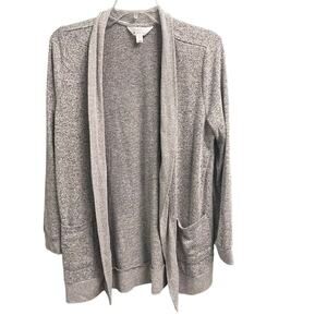 Market & Spruce Sz Large Gray Marled Open Sweater Cardigan Long Pockets Soft