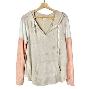 Market & Spruce Tan & Orange Colorblock Knit Hooded Sweatshirt M
