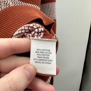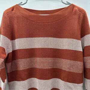 Market & Spruce Tawnee Cotton Blend Rust & White Stripe Waffle Sweater Sz L NEW