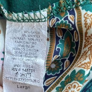 Market & Spruce Top Womens Large Green Floral Paisley Rolltab Blouse