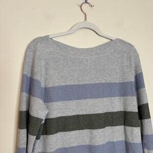 Market & Spruce Waffle Knit Boat Neck Striped Sweater - Gray Purple NWT Size XL