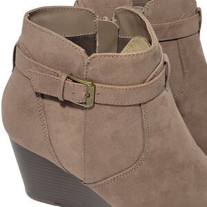 Market & Spruce Wedge Heel Ankle Bootie Womens Size 8.5 Suede Taupe Boots NEW