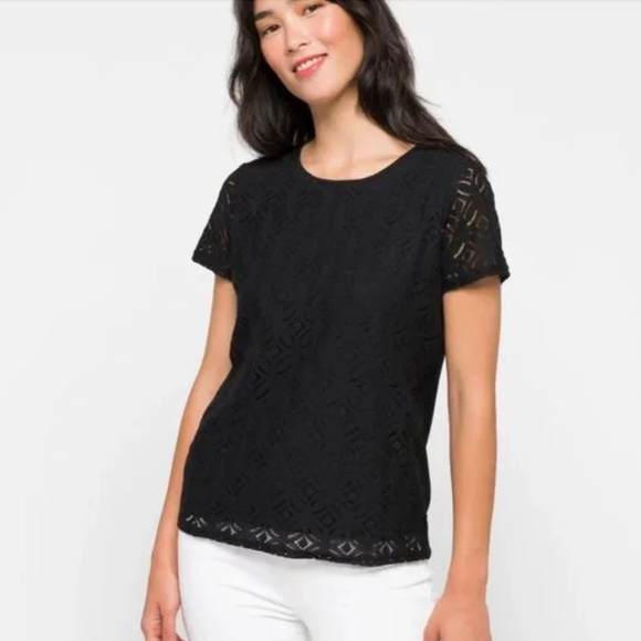 Market & Spruce Women's Black Lace Short Sleeve Top - Size Small