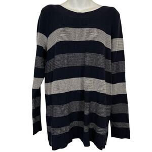 Market & Spruce Womens Cotton Blend Boat Neck Wide Striped Pullover Sweater XXL