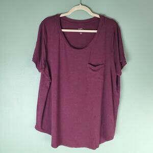 Market & Spruce Womens Elaine Pocket Short Sleeve Tee Size 2X Maroon