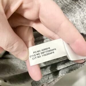 Market & Spruce brand. Size large. Heathered gray t-shirt dress with red and green floral pattern throughout. Purple lining on arm cuffs and neckline. Very soft, scoop neckline; knee length; casual wear; button closure at back of neck. In preloved condition, no visible defects (see photos for condition, if applicable); as with any preowned clothes, you should wash before wearing the first time. Made of polyester, rayon, and spandex. From a pet friendly home.