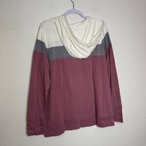 Market & Spruce Women’s Pullover Hoodie Colorblock Maroon White Gray NWT Plus 1X