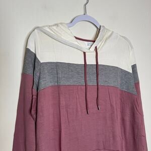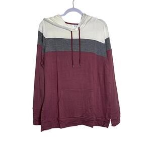 Market & Spruce Women’s Pullover Hoodie Colorblock Maroon White Gray NWT Plus 1X