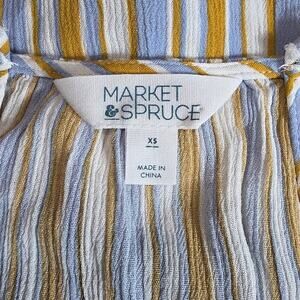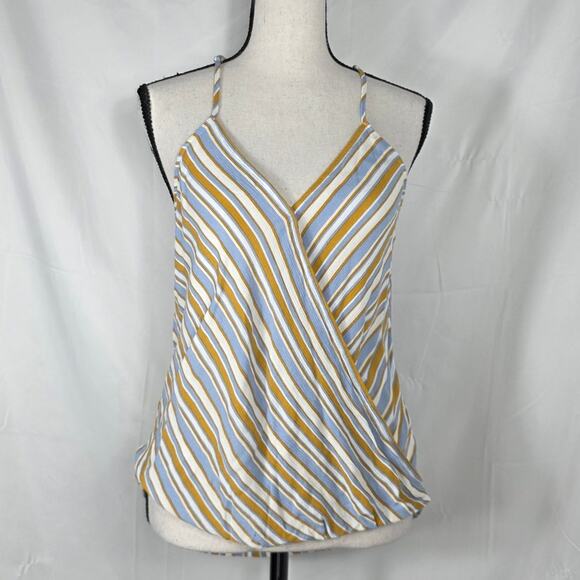 Market & Spruce Wrap Tank Women XS Blue Mustard Stripe Rayon Cami Top casual