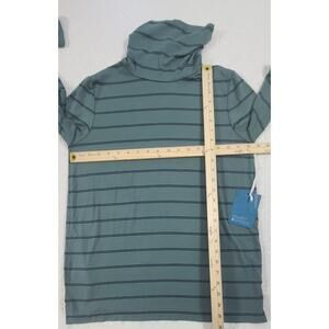 This is a stylish and comfortable cowl neck top from Market & Spruce. The lightweight knit fabric is perfect for layering, and the green color with dark blue stripes adds a touch of preppy flair. Dress it up for the office or wear it casually on the weekends. This top is sure to become a wardrobe favorite!