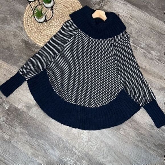 Market & Spruce navy and white poncho sweater size small excellent condition