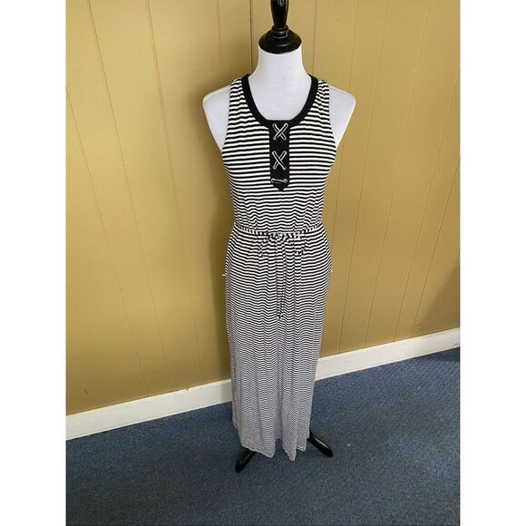 Market & Spruce women S scoopneck sleeveless stripe maxi dress w/tie cinch waist