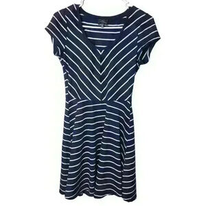 Market & Spruce women's navy blue and white striped A-line dress size small