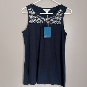 Market and Spruce Adelisa Embroidered Linen Blend Knit Tank