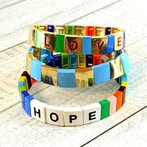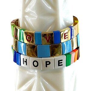 Market and Spruce Bracelet Set Love Hope Enamel Tile Stretch Gold Tone Blue