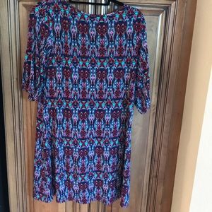 It's an awesome dress for anything! Looks great with boots or wedges. Super soft but good quality... worn a few times but looks brand new, pair with the denim jacket in my closet, add a scarf, long necklace... vibrant colors and simple cut make this so versatile and on trend! and no wrinkles, throw in a bag for any occasion with no hassle or worry! Hits top of the knee on me, @5'3... loose style but I'm not swimming in it, and easy to belt as it drapes well!