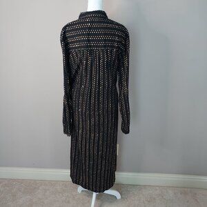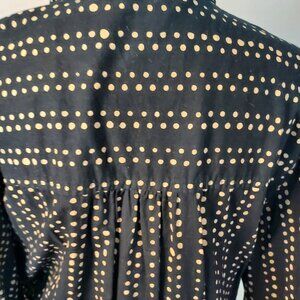 Size 2X Marketplace Handwork of India Button Front Midi Shirt Dress. 100% cotton. Black with tan polkadots. Long sleeves with button cuffs and roll-tabs. Front on-seam pockets. Relaxed fit/A-line. Pit to pit 25.5”. Length 49”. Worn only one time. Like new. Excellent condition.