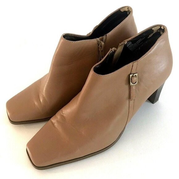 Markon Fanta Womens Camel Brown Soft Leather Ankle Zip Booties Boots 9W Shoes 3” Heel. Ships from smoke free home.